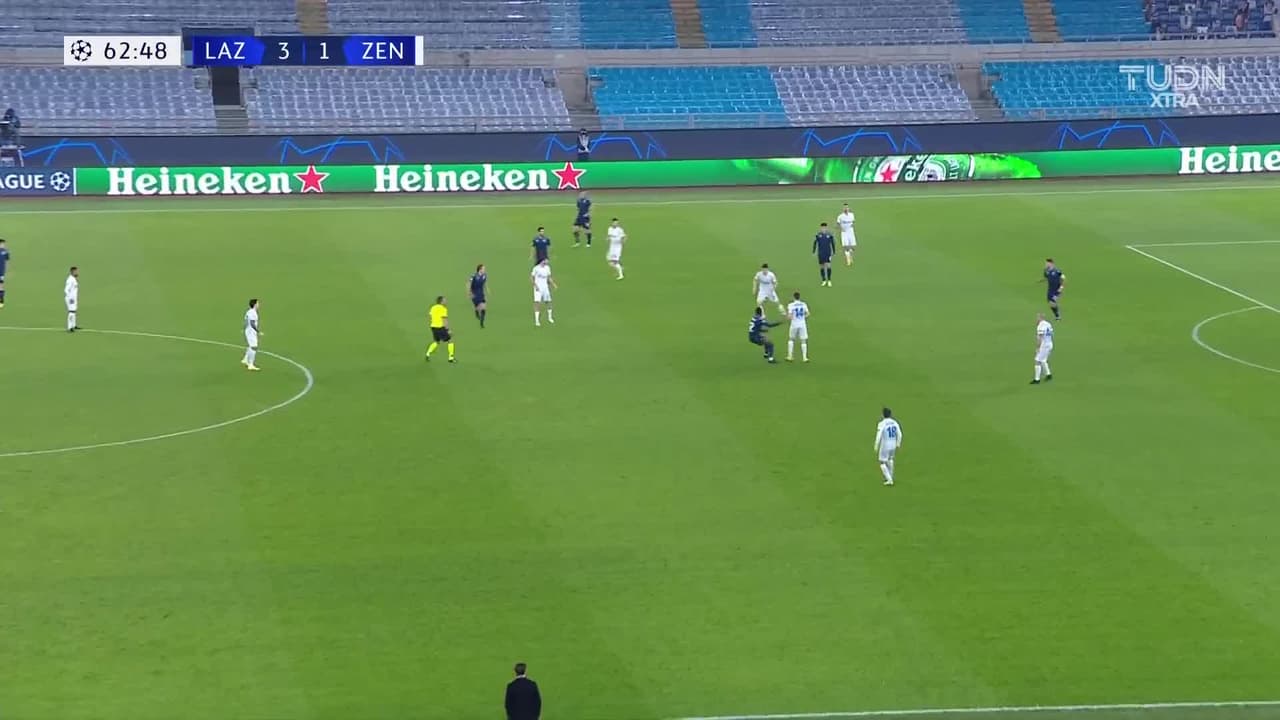 Tiro atajado. Sebastián Driussi (Zenit St Petersburg) Disparo con la derecha desde fuera del área.