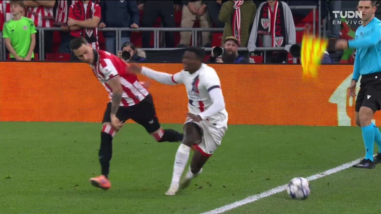 Tiro atajado por abajo a la izquierda. Senny Mayulu (Paris Saint-Germain) zurdazo desde el centro del área.