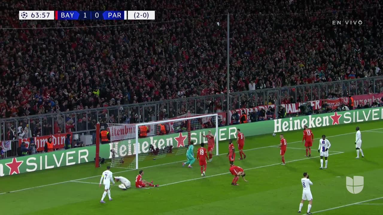 Tiro atajado junto al lado derecho de la portería. Sergio Ramos (Paris Saint-Germain) disparo de cabeza desde el centro del área. Asistencia de Lionel Messi con un centro al área.