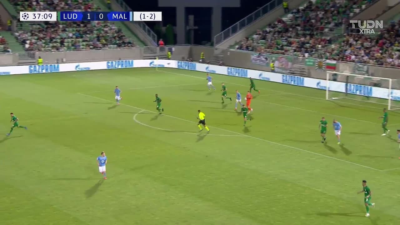 Tiro atajado por abajo a la izquierda. Sören Rieks (Malmö FF) disparo de cabeza a quemarropa desde el lado izquierdo. Asistencia de Antonio-Mirko Colak con un centro al área.