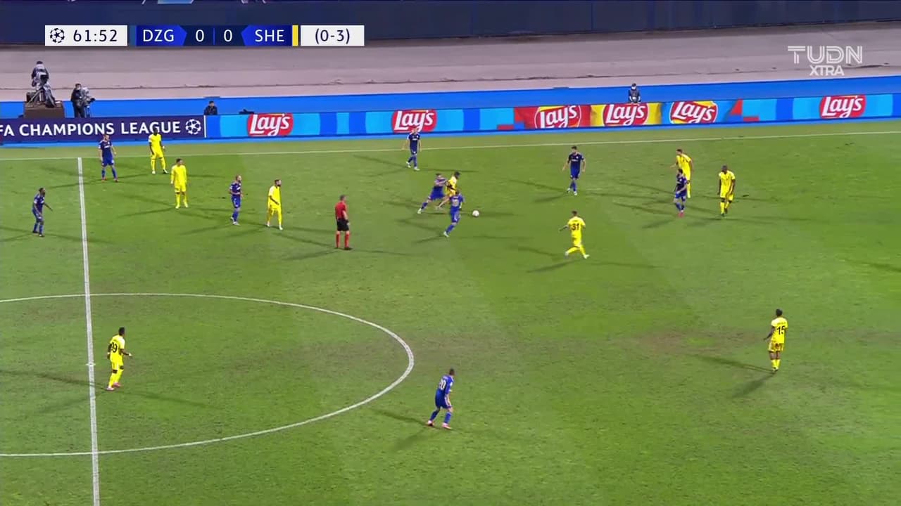Tiro atajado al ángulo superior derecho. Stefan Ristovski (Dinamo Zagreb) Disparo con la derecha desde fuera del área. Asistencia de Luka Ivanusec.