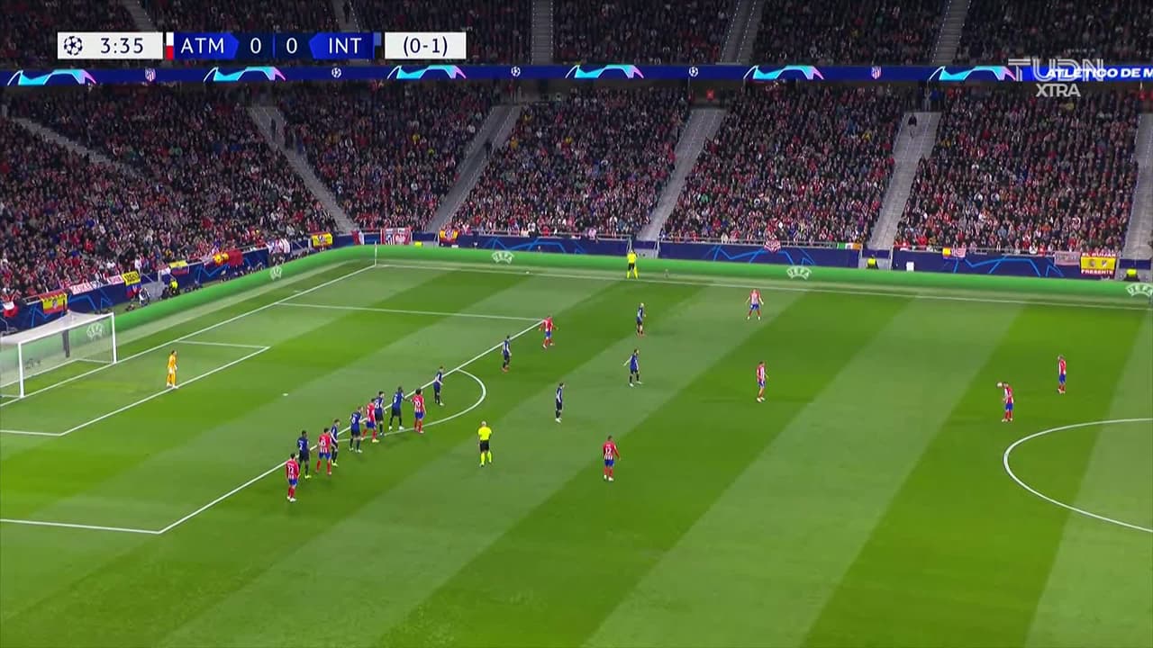 Tiro atajado raso al centro del arco. Stefan Savic (Atlético de Madrid) disparo de cabeza desde el centro del área. Asistencia de Rodrigo De Paul pase largo.