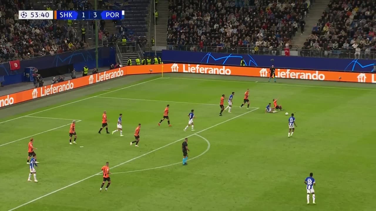 Tiro atajado raso al centro del arco. Stephen Eustáquio (FC Porto) Disparo con la derecha desde el centro del área.
