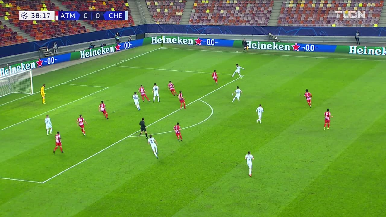 Tiro atajado al ángulo superior derecho. Timo Werner (Chelsea) zurdazo sin ángulo desde la izquierda. Asistencia de Mason Mount.