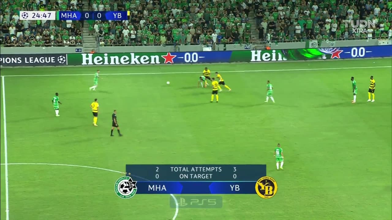 Tiro atajado por abajo a la izquierda. Tjaronn Chery (Maccabi Haifa) zurdazo desde fuera del área. Asistencia de Diaa Sabia.