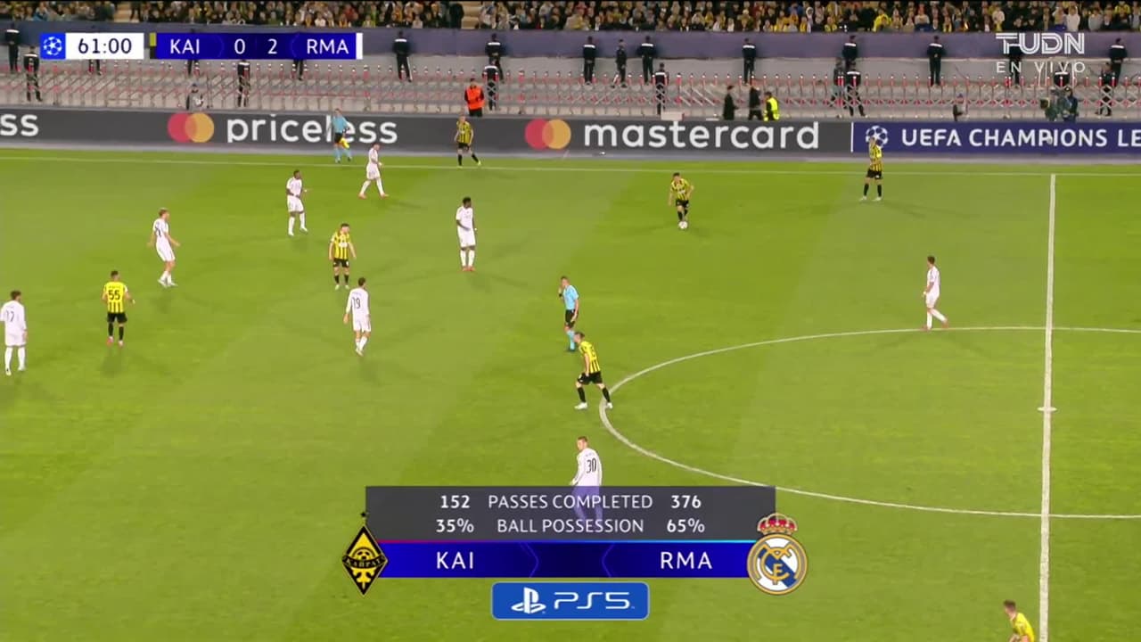 Tiro atajado al ángulo superior derecho. Valeri Gromyko (Kairat) zurdazo desde el lado izquierdo dentro del área. Asistencia de Luís Mata.
