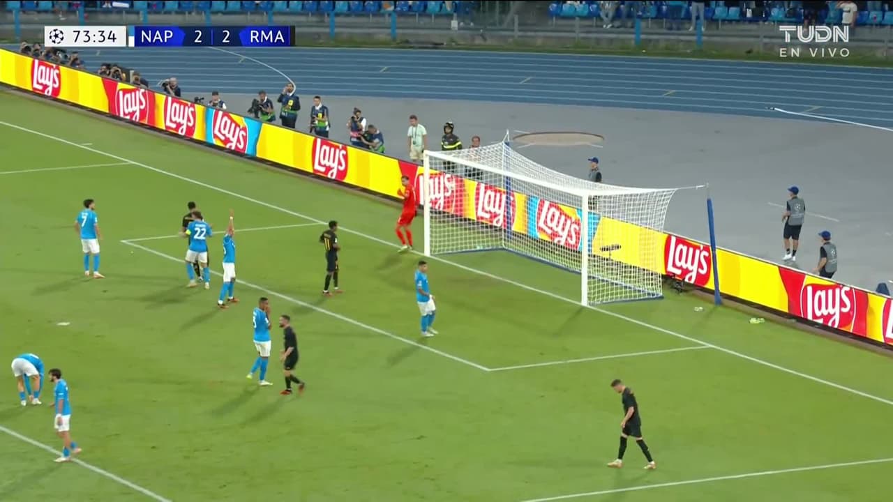 Tiro atajado por abajo a la izquierda. Vinícius Júnior (Real Madrid) Disparo con la derecha desde el lado derecho dentro del área. Asistencia de Dani Carvajal.
