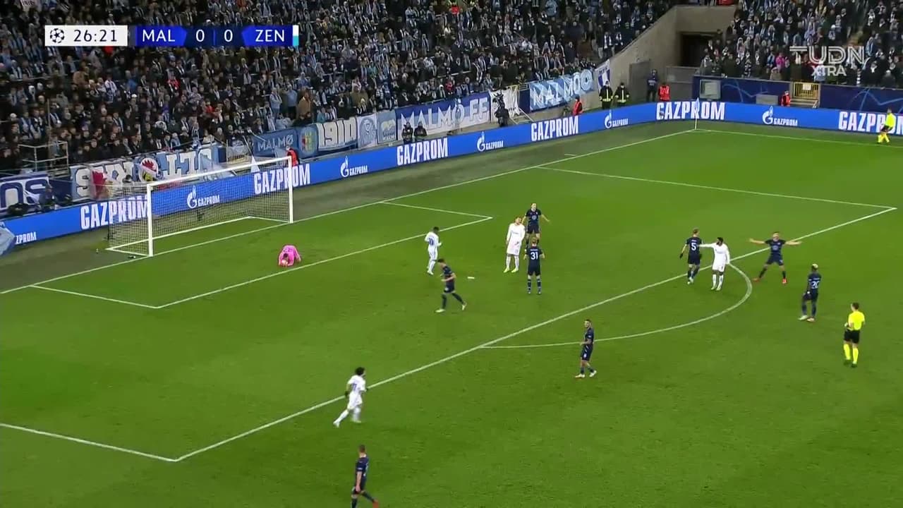 Tiro atajado. Wendel (Zenit St Petersburg) Disparo con la derecha desde fuera del área.