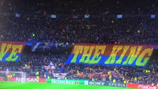 La afición del Barcelona recibió a su equipo con un mensaje de dos lecturas: ensalzar a Messi y, de paso, recordarle al Rey de España la última sentencia del tribunal de Estrasburgo.