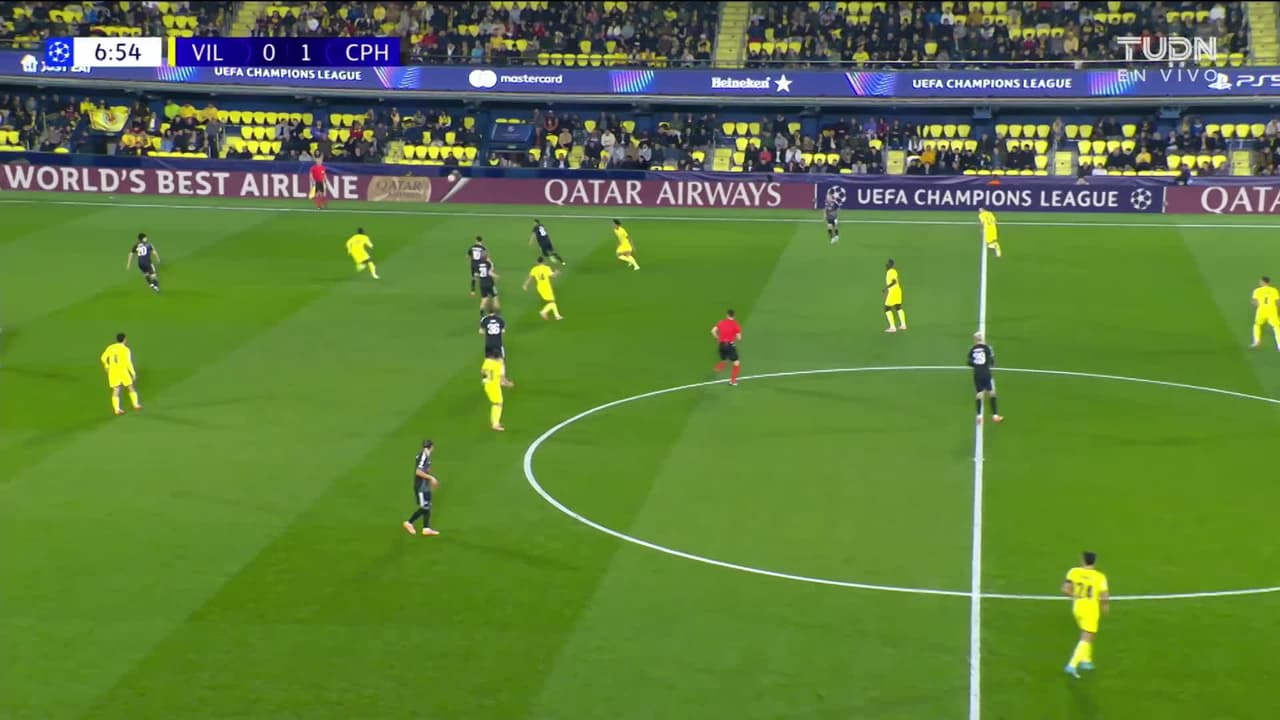 Tiro atajado por abajo a la izquierda. Alberto Moleiro (Villarreal) Disparo con la derecha desde fuera del área.
