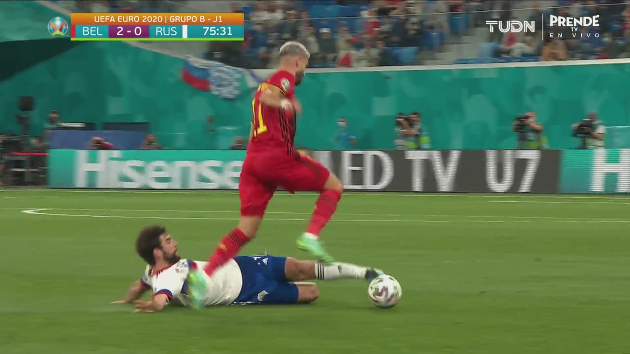 El volante de Rusia deja atrás a tres rivales y cuando pisa el área es despojado del balón, al 75’.