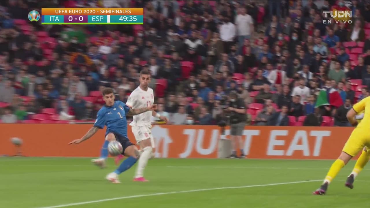 ¡Corte salvador! Di Lorenzo se tiene que cruzar para evitar el gol de España