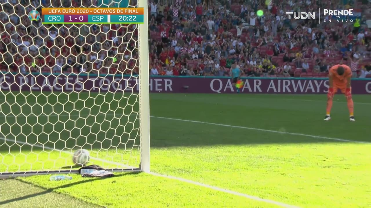 Pedri retrasó el esférico y el bote complicó al arquero de España, quien permitió el tanto al 19’.