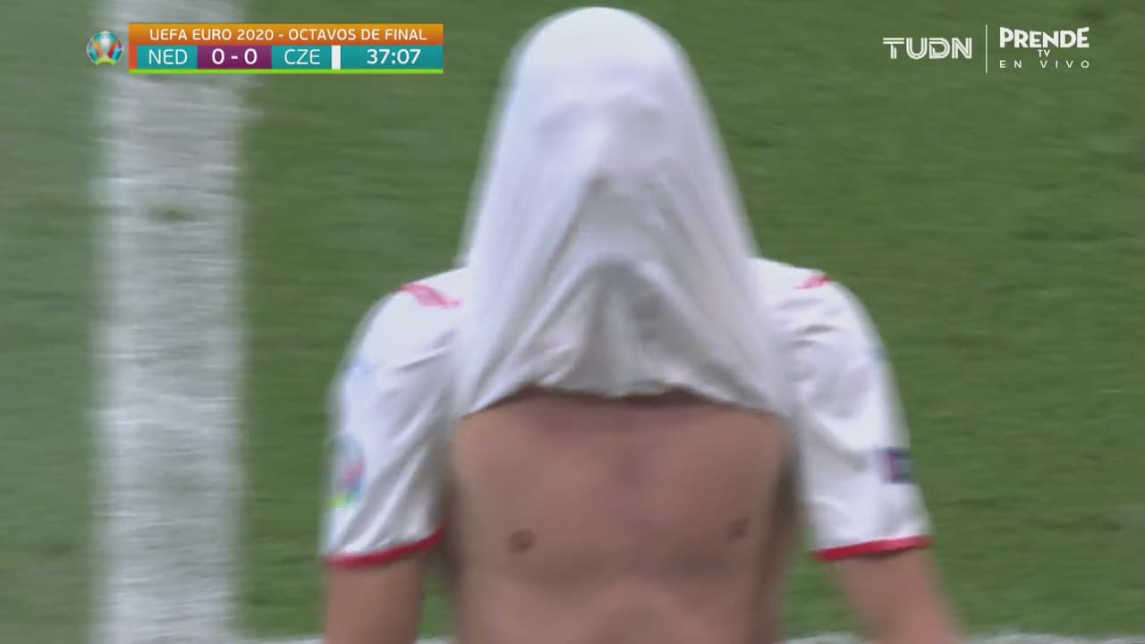 Antonín Barák se escapó y disparó frente al arco, pero el defensor desvió el impacto al minuto 37.