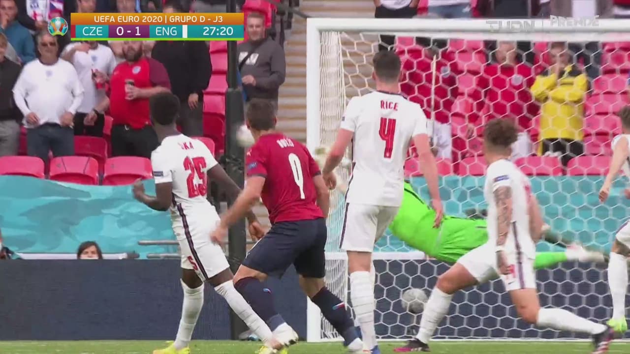 El jugador de la República Checa ensayó desde las afueras del área, pero el arquero manoteó al 27’.