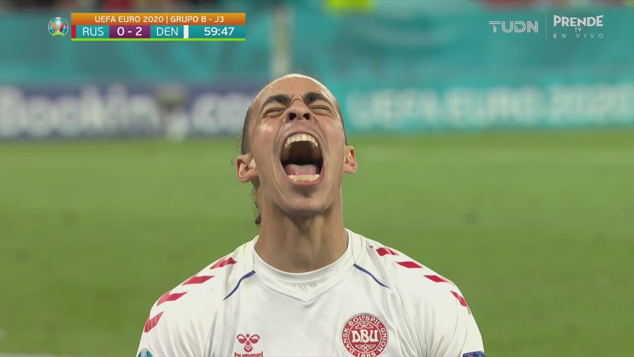 ¡Explota Dinamarca! Terrible error de Rusia para el 0-2 de Poulsen