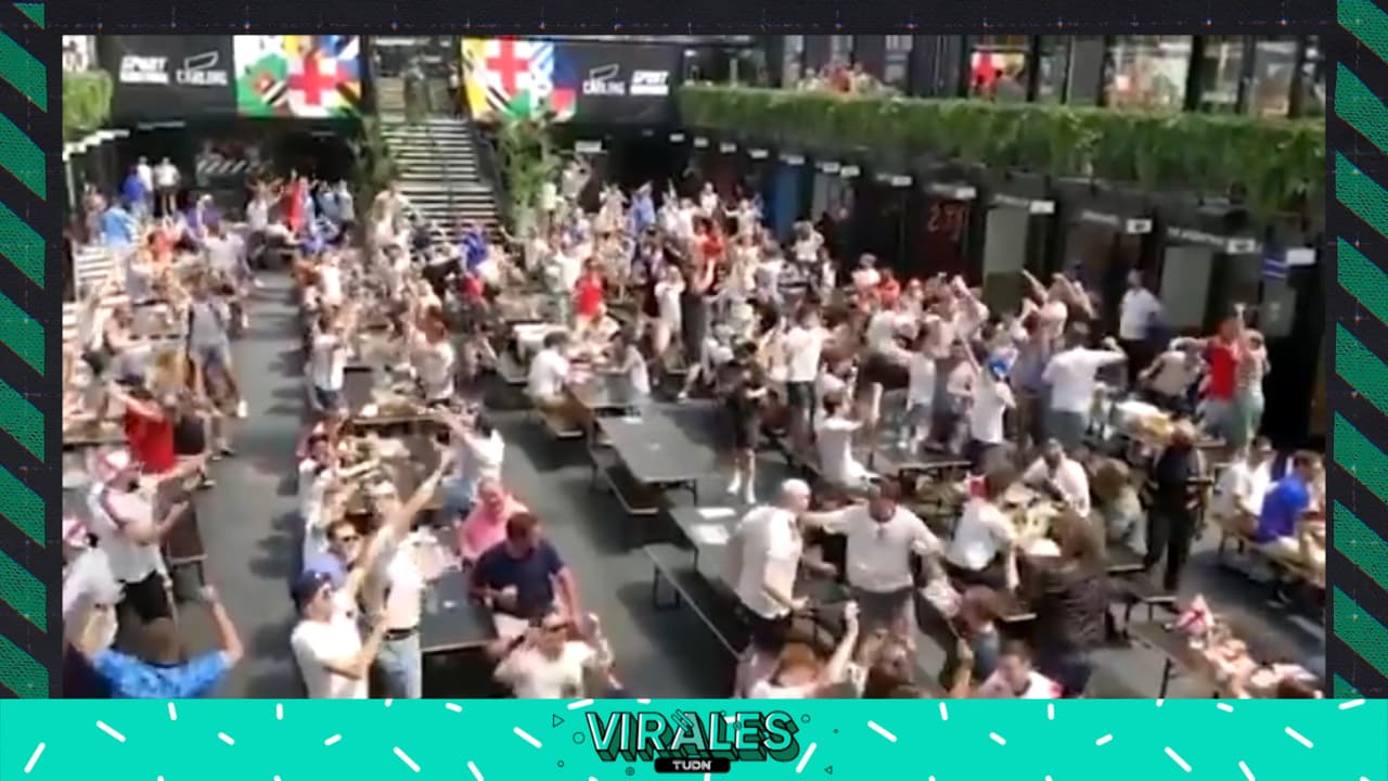 Previo al encuentro ante Croacia, los aficionados ingleses cantaron al unísono en Boxpark Croydon.