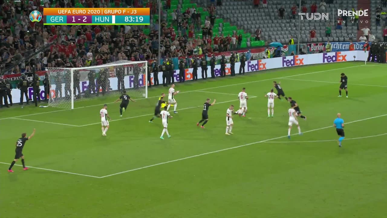¡Gol! Alemania 2| Hungría 2. Leon Goretzka (Alemania) Disparo con la derecha desde el centro del área.