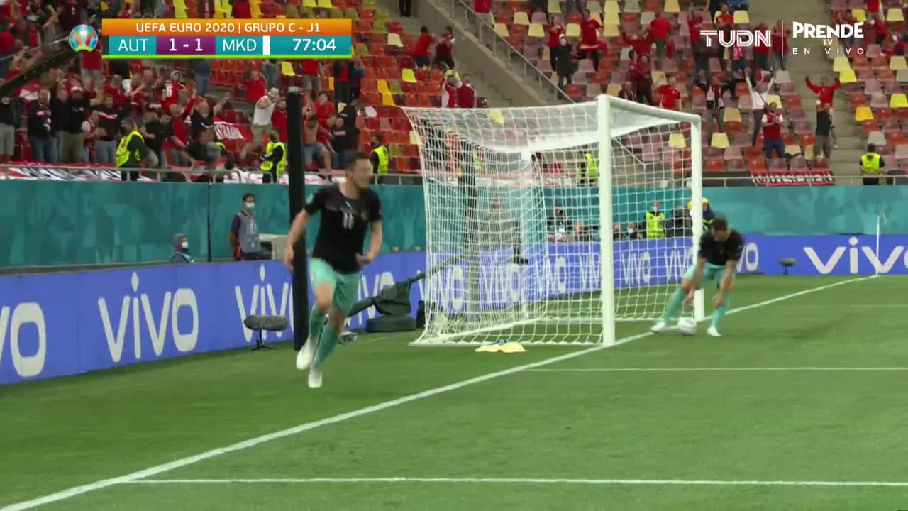 ¡Gol! Austria 2| Macedonia 1. Michael Gregoritsch (Austria) Disparo con la derecha desde muy cerca.