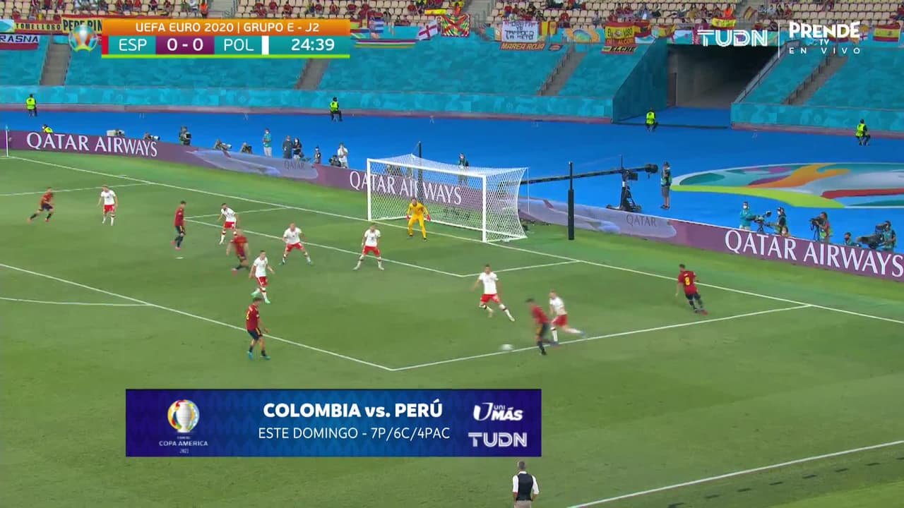 ¡Gol! España 1| Polonia 0. Álvaro Morata (España) Disparo con la derecha desde muy cerca.