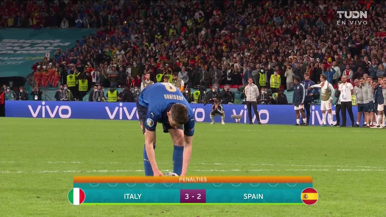 ¡Gol! Italia 1(4)| España 1(2). Jorginho (Italia) convirtió el penalti Disparo con la derecha.