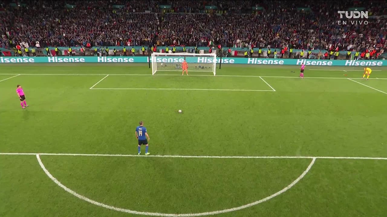 ¡Gol! Italia 1(2)| España 1(1). Leonardo Bonucci (Italia) convirtió el penalti Disparo con la derecha.