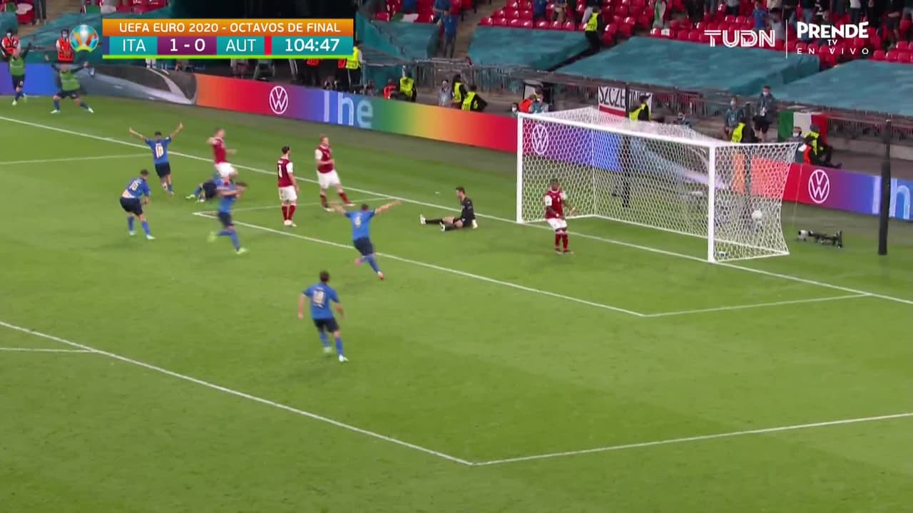 ¡Gol! Italia 2| Austria 0. Matteo Pessina (Italia) zurdazo sin ángulo desde la izquierda.