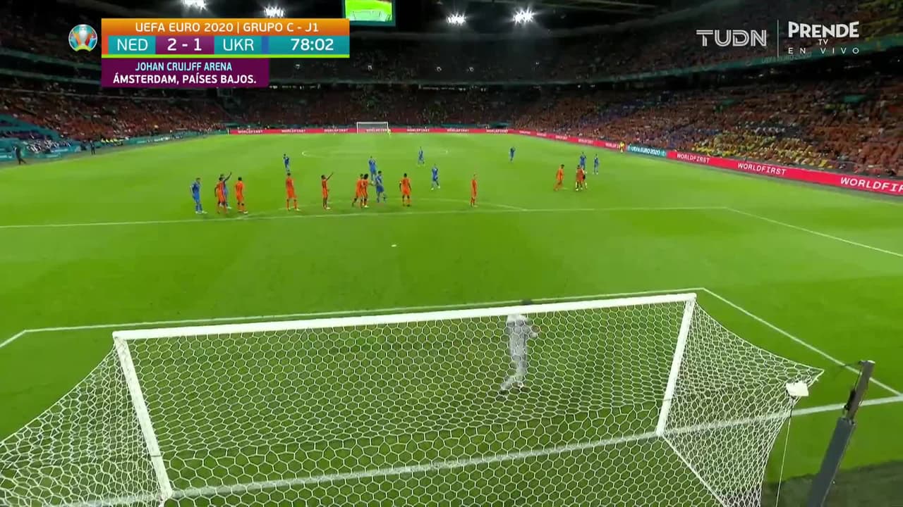 ¡Gol! Holanda 2| Ucrania 2. Roman Yaremchuk (Ucrania) disparo de cabeza desde el centro del área tras el cobro de una falta.