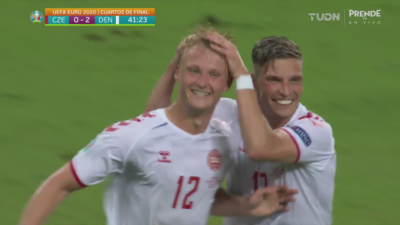 ¡Golazo! Dolberg empuja el balón para el 0-2 de Dinamarca
