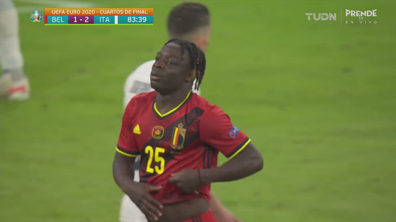 Sin embargo, en la siguiente jugada Bélgica recortó distancias gracias a un empujó de Giovanni Di Lorenzo sobre Jérémy Doku que el árbitro marcó penal. Lukaku se posicionó desde los once pasos para engañar a Donnarumma y poner la redonda del lado contrario (izquierdo) hacia donde se lanzó.