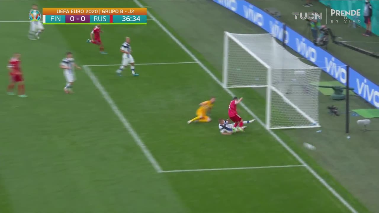 El defensa de Finlandia barrió, el ruso fue a dar contra el poste y, en la caída, le pegó a Uronen en la cara.