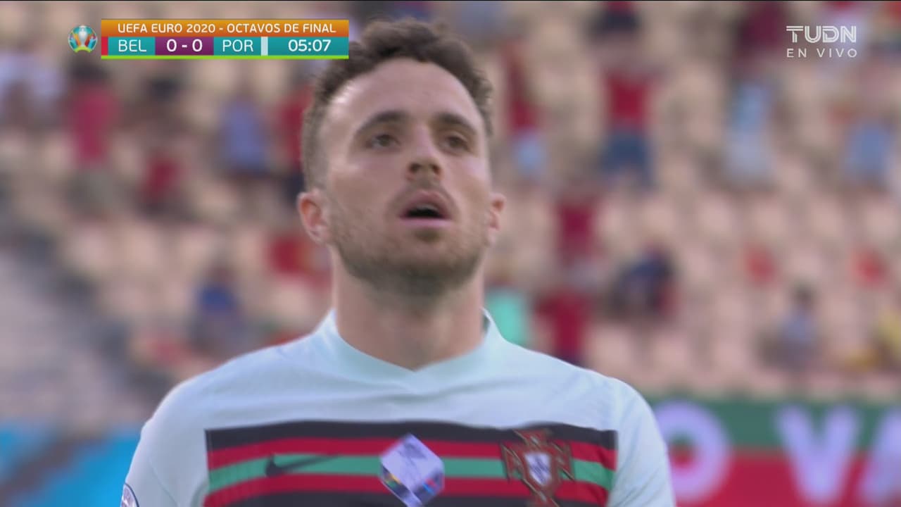 Portugal recuperó el balón en el medio campo al 5' y Diogo cruzó bastante su disparo.