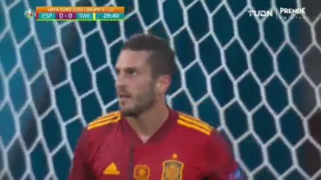 Koke tuvo dos jugadas de gol que tiró por fuera, mientras Olmo y Morata también erraron ante el arquero.