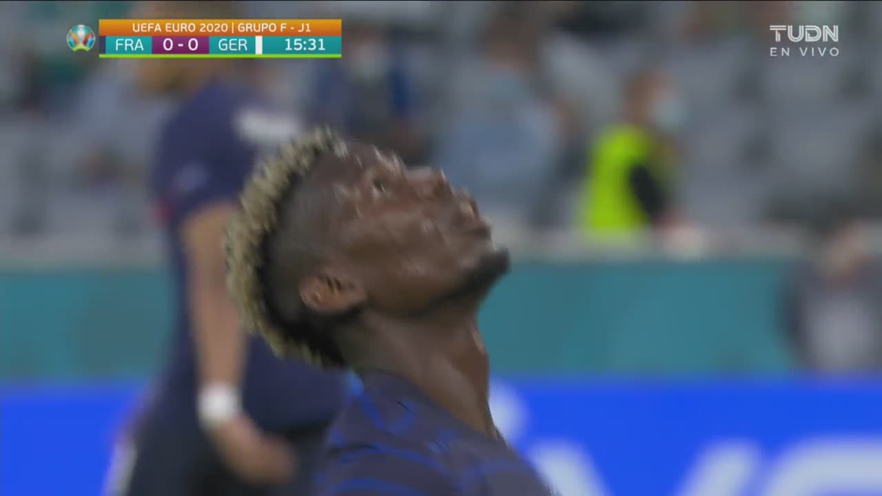 ¡No la conecta bien! Paul Pogba salta y su intento se va arriba