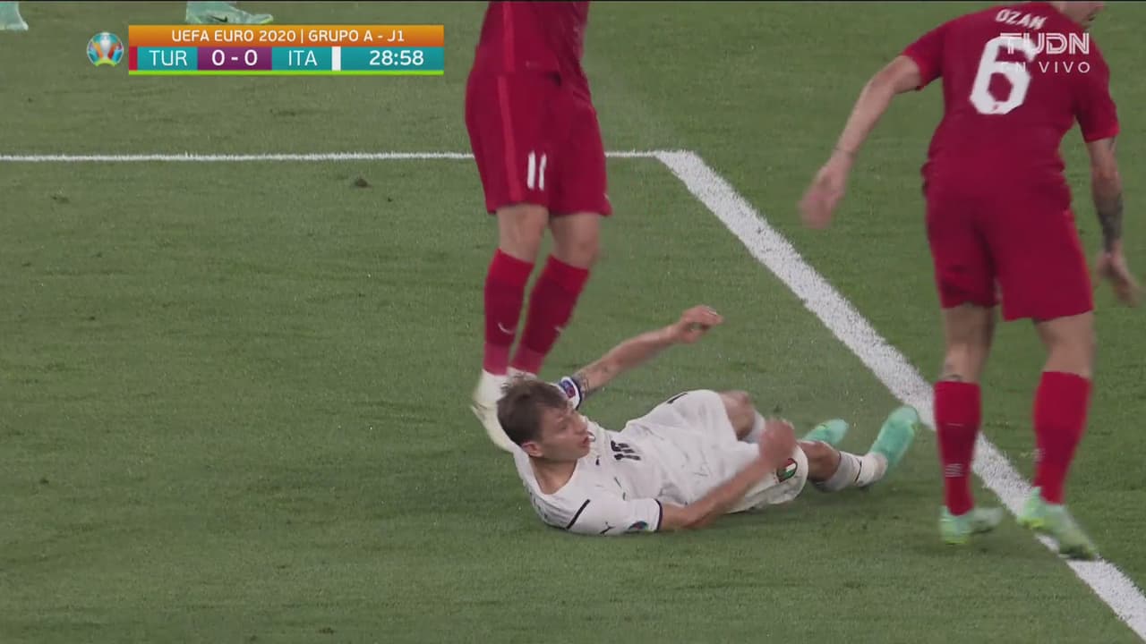 Contacto de Yazıcı sobre el italiano en la frontera del área y dejan seguir, al minuto 29.
