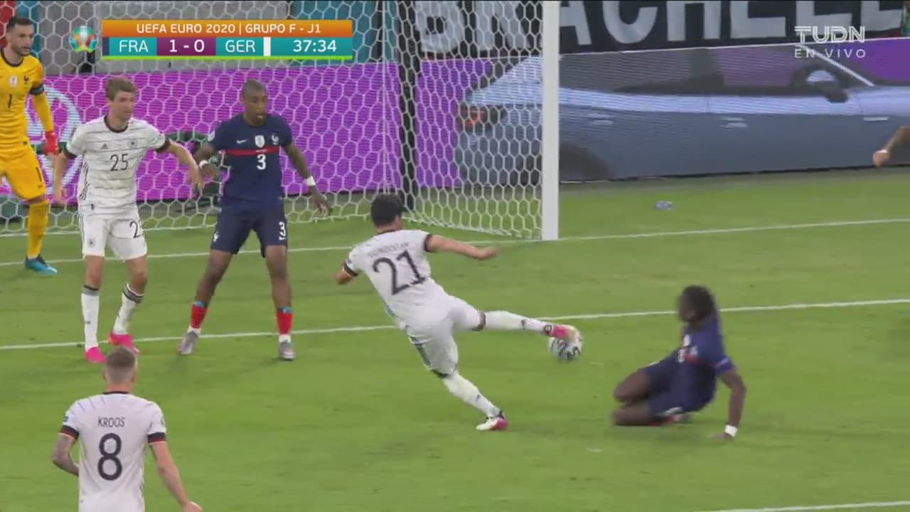 Le llega la pelota al alemán, pero ve que se acerca Pogba y ambos encogen la pierna, al 38’.