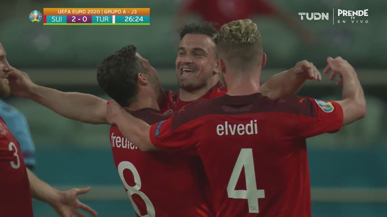 El delantero de Suiza disparó desde las afueras del área y en el festejo mandó a callar a las gradas al 26’.
