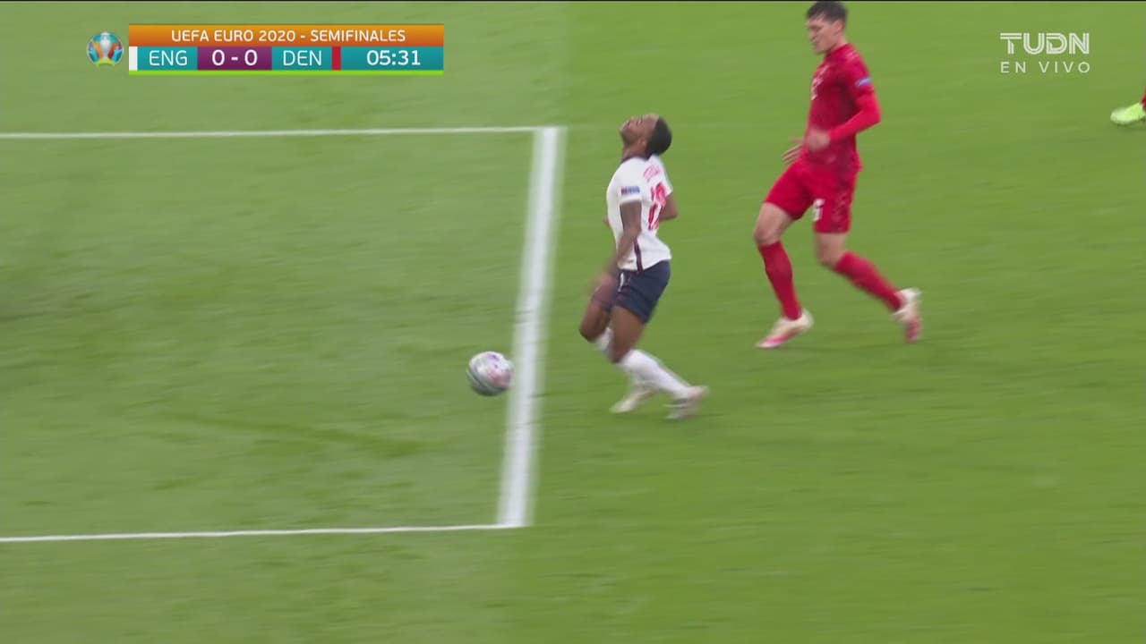 Descolgada inglesa, Harry entró por banda derecha y metió servicio que Raheem no pudo rematar al 6’.