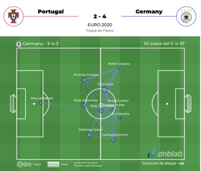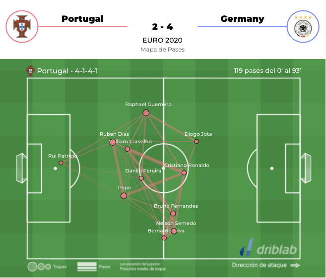 Así fue el comportamiento de los pases al ataque de Portugal y Alemania: