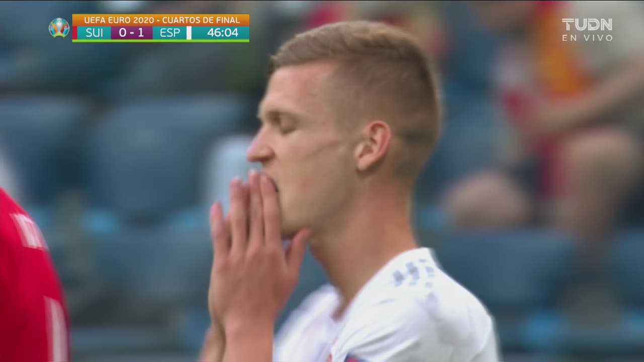 ¡Primera que toca y falla! Daniel Olmo estrella su tiro en Sommer