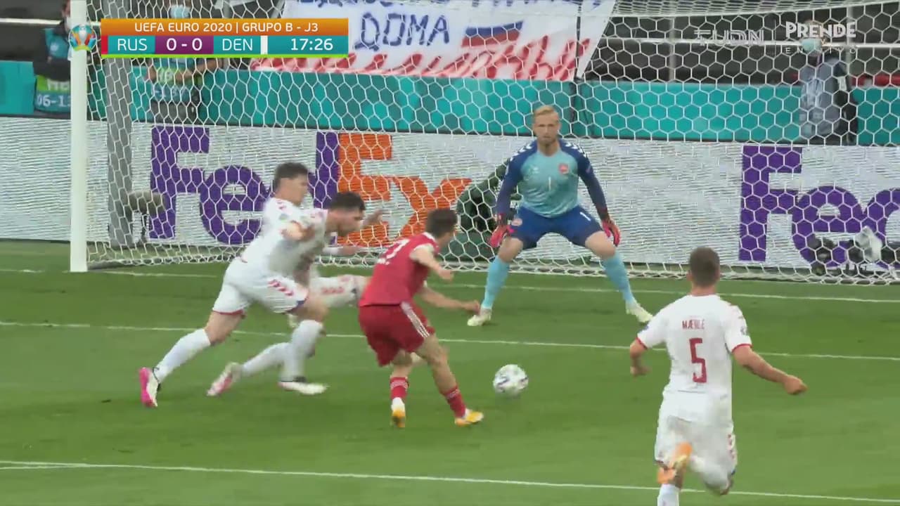 ¡Rusia perdona la primera! Schmeichel le tapa con los pies a Golovin