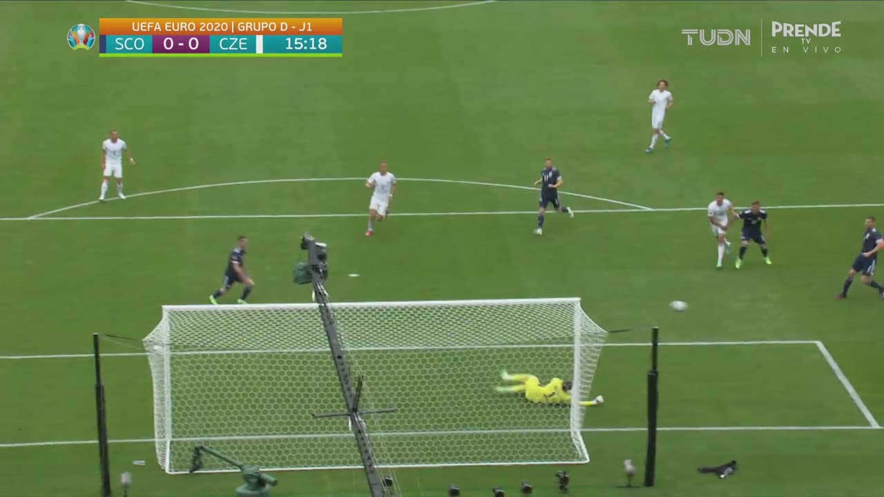 El delantero de República Checa prendió una diagonal y el portero de Escocia se lució al minuto 15.