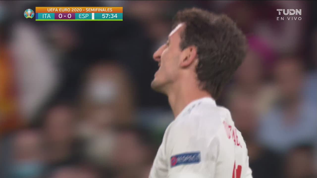 En los linderos del área, el español mete un bombazo que el portero controla correctamente, al 58'.