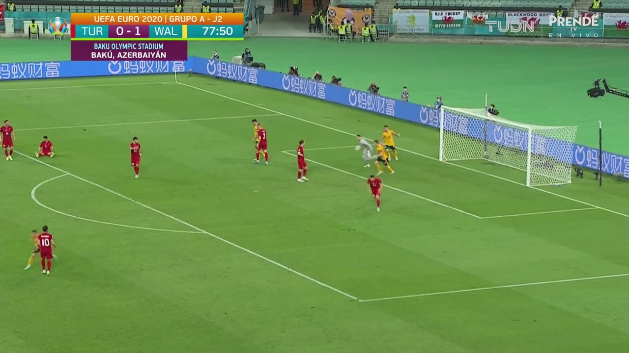 Tiro atajado por abajo a la izquierda. Daniel James (Gales) Disparo con la derecha desde el lado izquierdo dentro del área. Asistencia de Ethan Ampadu.