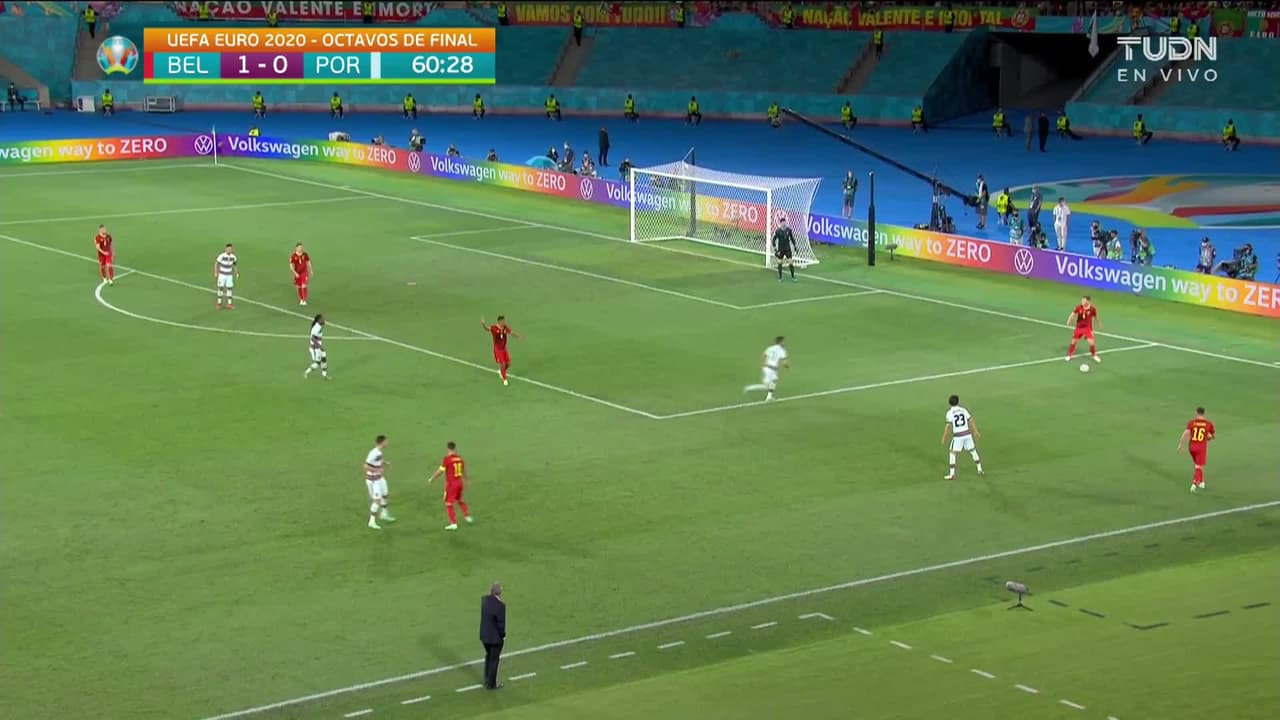 Tiro atajado junto al lado derecho de la portería. João Félix (Portugal) disparo de cabeza desde el centro del área. Asistencia de Renato Sanches con un centro al área.