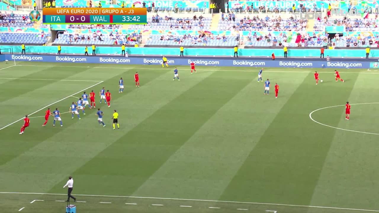 Tiro atajado raso al centro del arco. Joe Rodon (Gales) disparo de cabeza desde el lado izquierdo dentro del área. Asistencia de Daniel James pase largo.