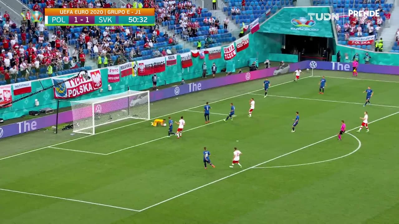 Tiro atajado raso al centro del arco. Karol Linetty (Polonia) zurdazo desde el centro del área. Asistencia de Mateusz Klich con un centro al área.