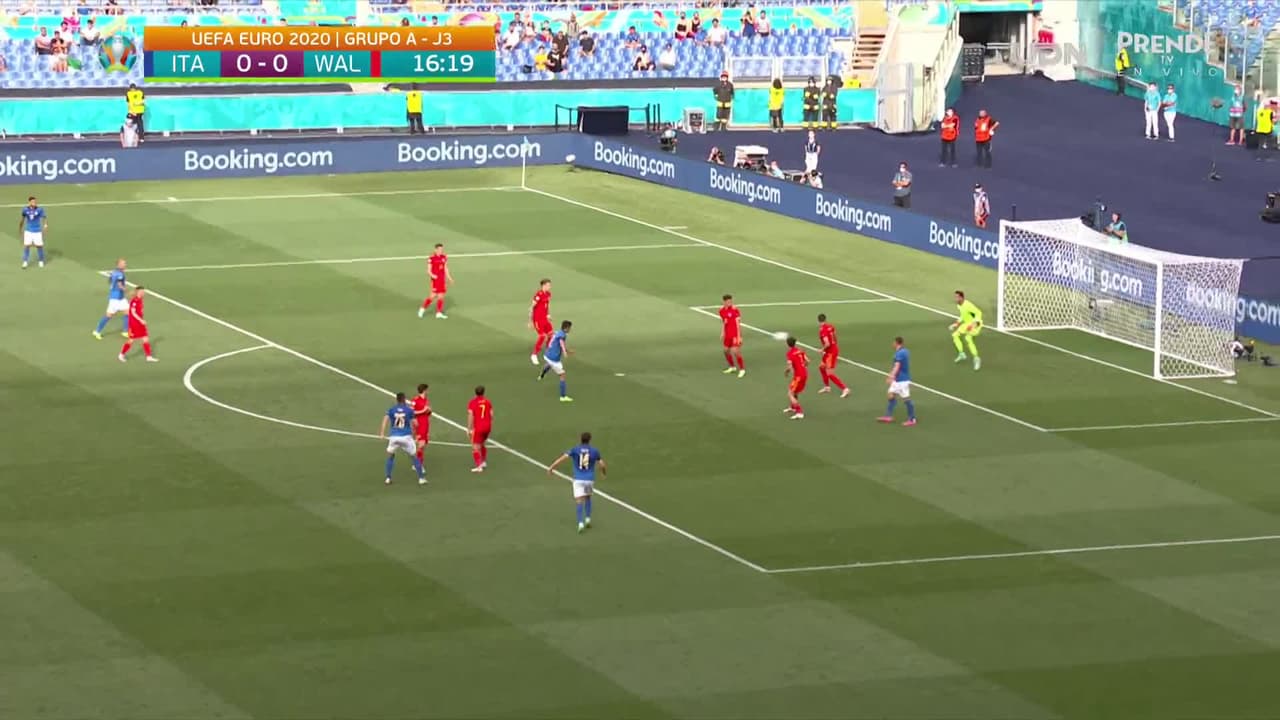 Tiro atajado raso al centro del arco. Matteo Pessina (Italia) zurdazo desde el centro del área. Asistencia de Rafael Tolói.