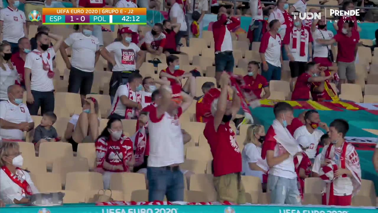 Tiro atajado. Robert Lewandowski (Polonia) zurdazo desde el centro del área.