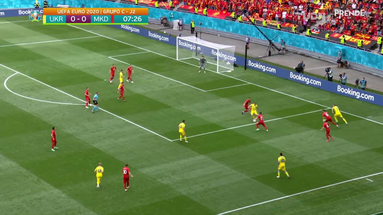 Tiro atajado. Ruslan Malinovskiy (Ucrania) Disparo con la derecha desde fuera del área.